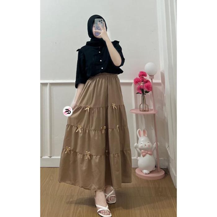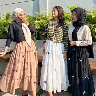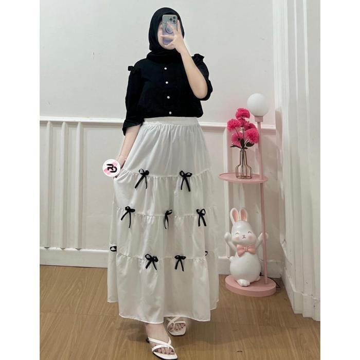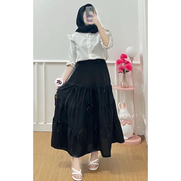 Zn - Peony Skirt Ribbon / Alice Ribbon Midi Skirt - Hitam Pita Maroon