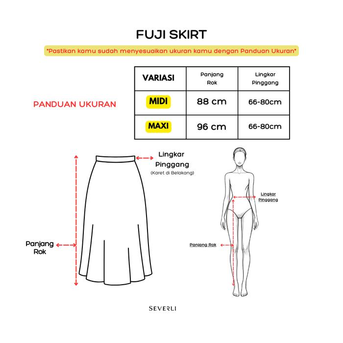 Severli Fuji Midi Maxi Skirt | Rok Kerja | Rok Wanita Korean Style Formal Casual | Rok High Waist Flowy Tebal Pinggang K