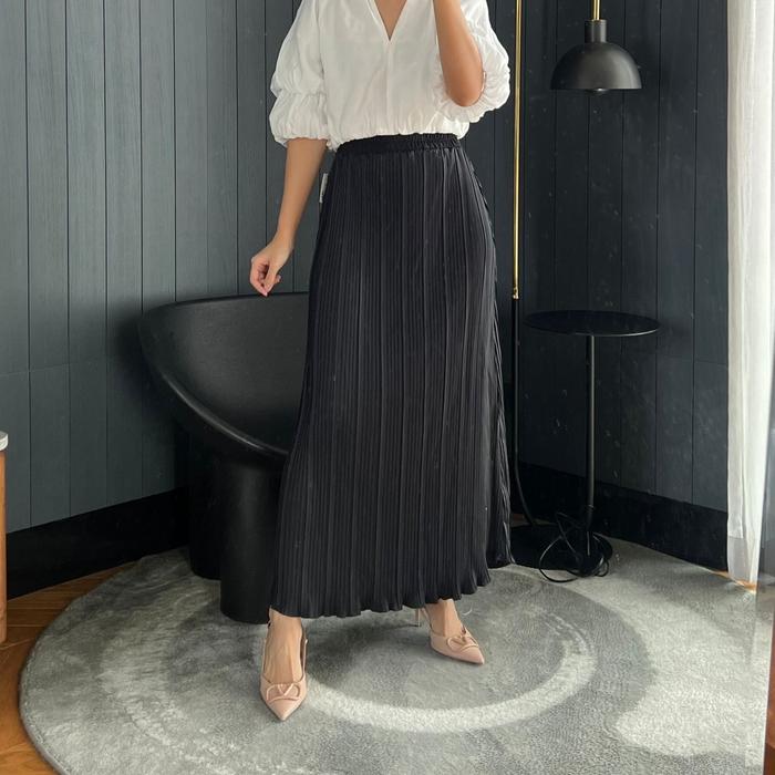 Rok Panjang Plisket Bb Wavy / Rok Bb Wavy Wanita / Rok Plisket Bb Wavy (036) - Hitam