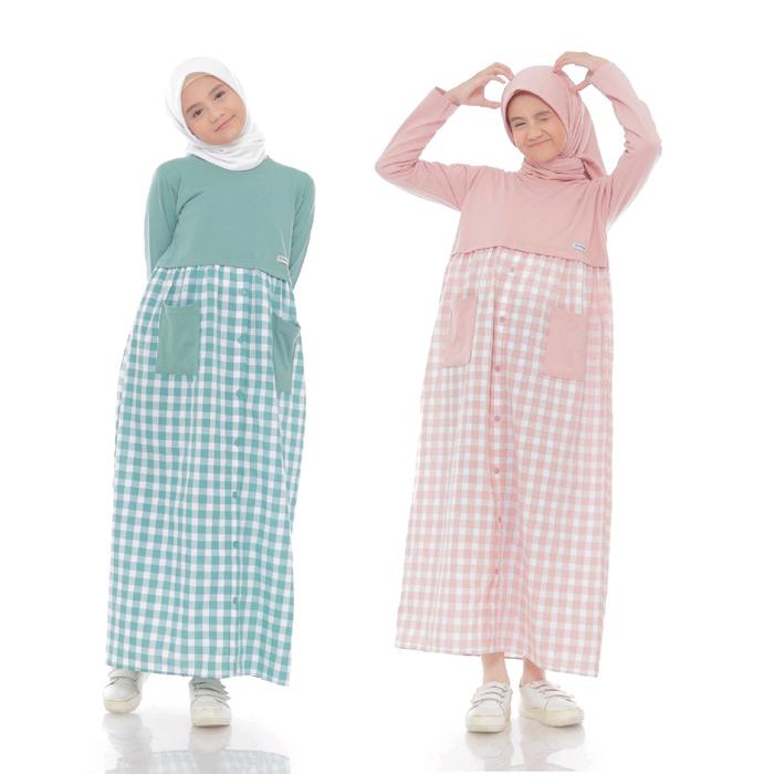 Gamis Lebaran 2024 Anak Perempuan Terbaru Muslimah Usia 5 Sampai 14 Tahun Dress Kombinasi Muslim Kaos Panjang Katun Aes