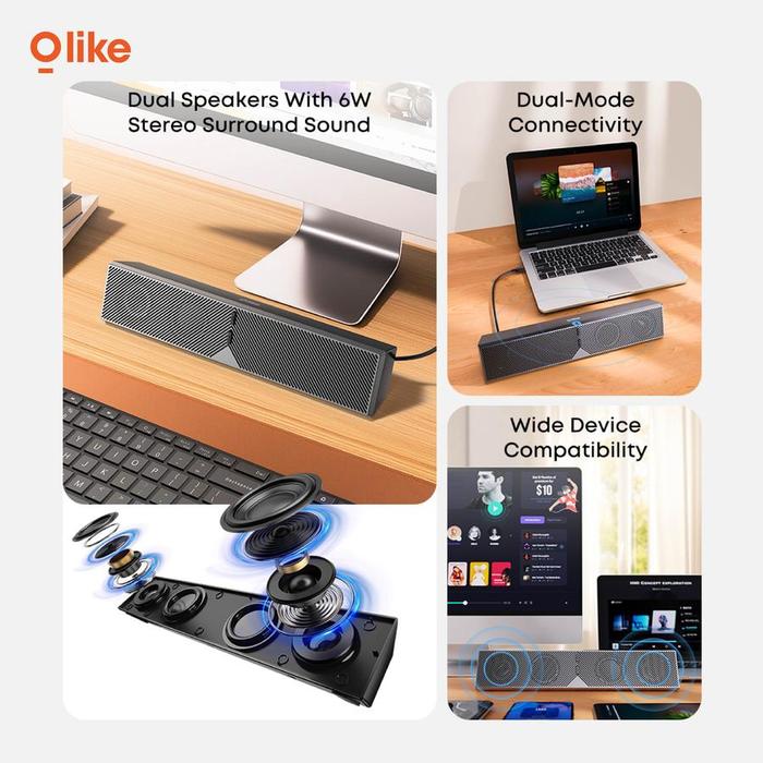 Olike Speaker Sc08 - Desktop Dual Speaker Stereo 6W | Bluetooth 5.4, Usb Input, Bass Max