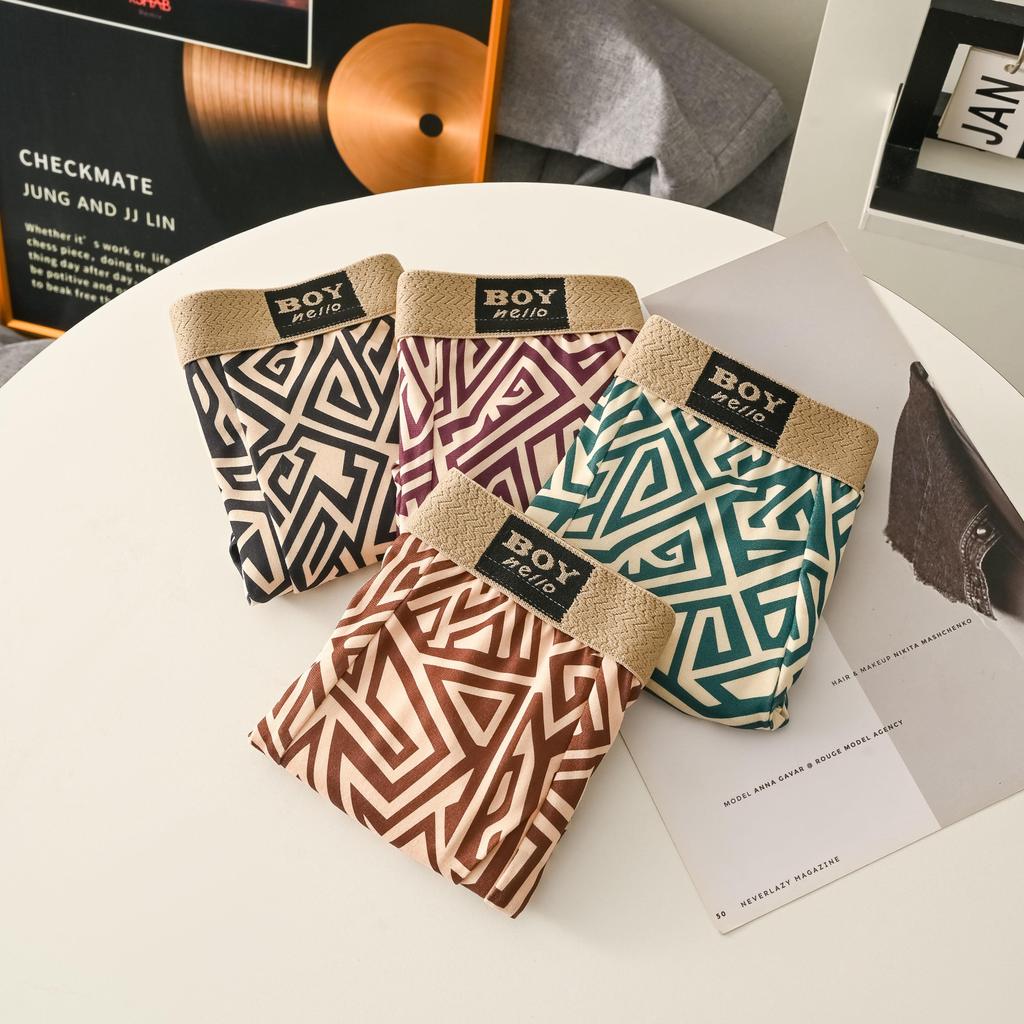 FLASH SALE PAKET 4 PCS Celana Dalam Pria Boxer Motif Geometris Abstrak Poliester Spandeks CDP3302 Bahan Nyaman Ukuran L hingga 4XL Hemat dan Nyaman untuk Seharihari Royal Victor