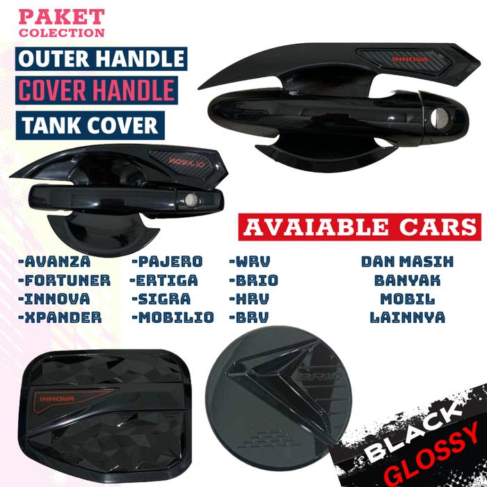 PAKET LENGKAP HANDLE OUTER TANK COVER HITAM GLOSSY MOBIL AVANZA XENIA VELOZ AGYA AYLA HRV BRV RAIZE ROCKY INNOVA REBORN