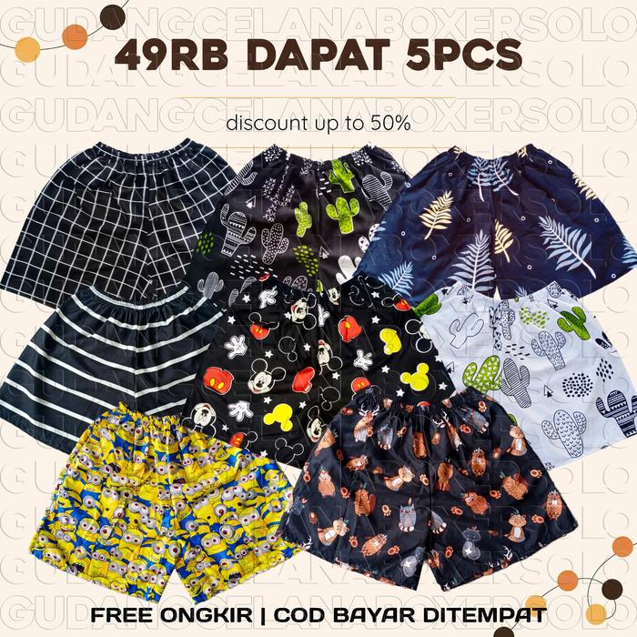 (Promo Boxer 5Pcs Bb Dibawah 70Kg Motif Random) Celana Pendek Viral Dewasa Unisex All Size Cowok Melar Nyaman Santai Sho