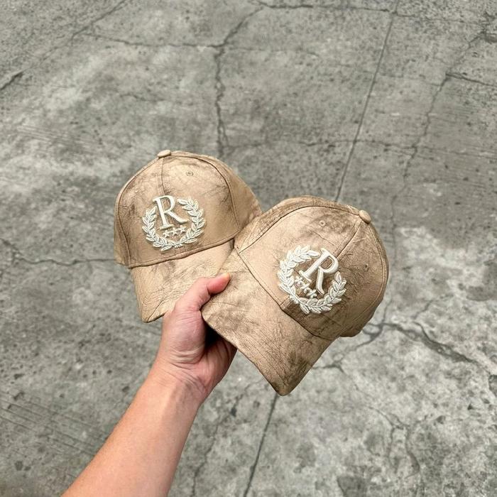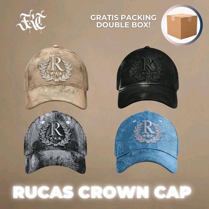 Topi Rucas “The Crown” Leather & Denim Cap/Hat Original 100 PERSEN - Beige Marble