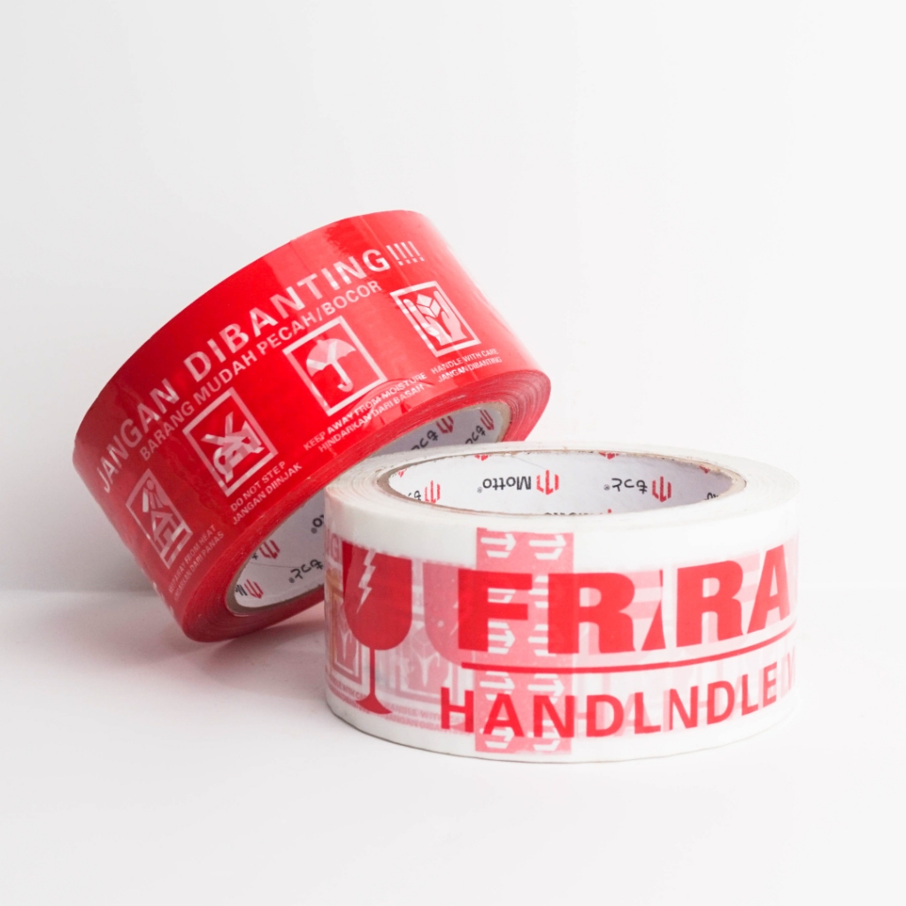 Lakban Fragile 48mm x 80 Yard Merah - 1 Pcs/Roll Satuan - Motto Tape