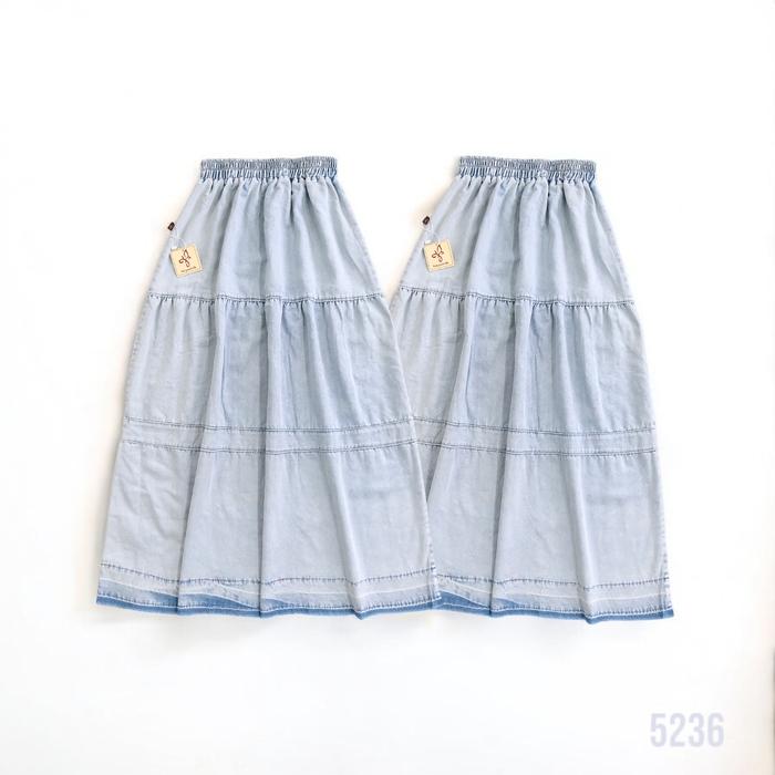 Rok Jeans Anak Perempuan Panjang Remaja Tanggung Rempel Fashion Nomenakids 5149 5150 5162 - 5149 Light Blue, 6-7 Tahun