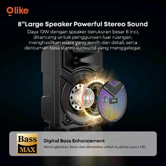 Olike Km6 Wireless Portable Bluetooth 5.3 Speaker Karaoke With Mic Rgb Tf Usb Aux - Tws Mode