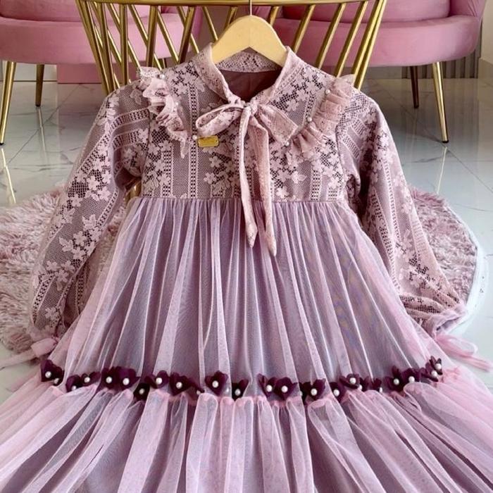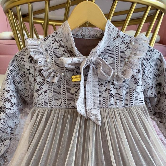 Zahrah Dress Anak Perempuan Usia 3 - 15 Tahun - Gamis Brukat Anak - Taupe, S