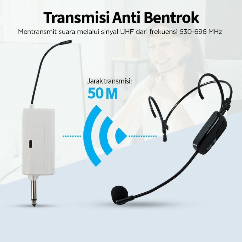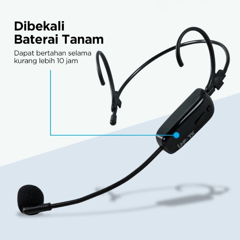 Mic Microphone Wireless Headset UHF TaffSTUDIO Mic Imam Masjid Mic Bando ( 2 Pcs ) Kualitas Bagus