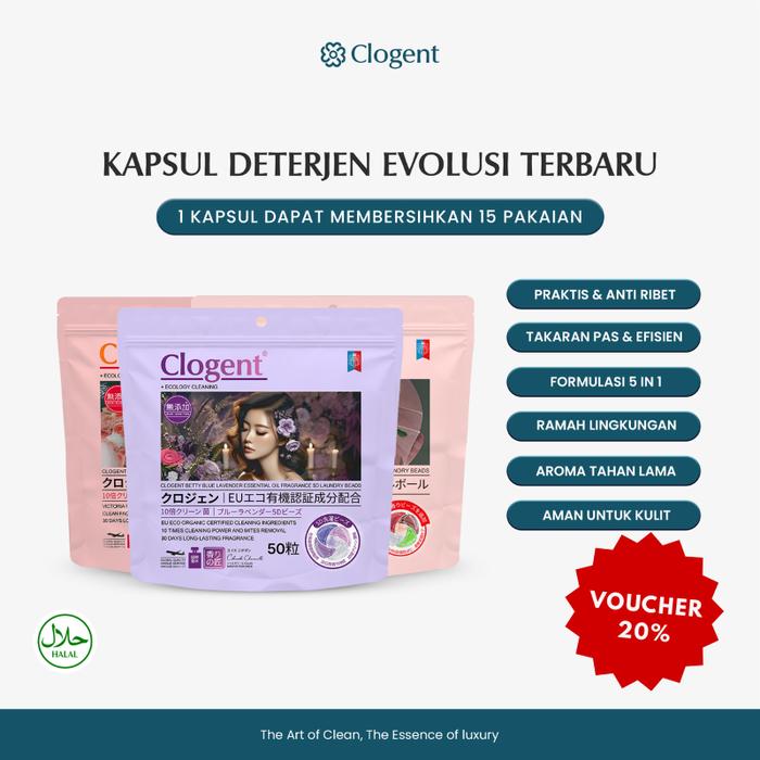 【5-in-1 50 PCS】Clogent Laundry 5-in-1 Dengan 10x Kekuatan Antibakteri Wangi Tahan Lama - Mix Hemat (3 Pack)