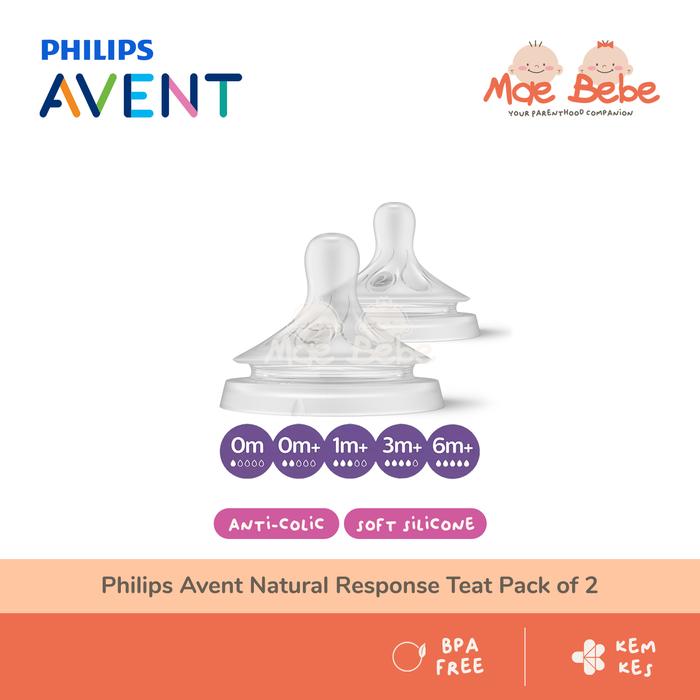 Philips Avent Teat Natural Response Nipple Dot Botol Susu Bayi Wide Neck 2 Pcs - 2 Lambat SCY962/02