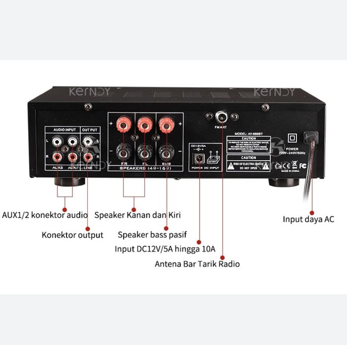 Amplifier Kerndy Bluetooth 5.3 Audio Eq Av-688Bt Channel 2.1 Full Bass Subwofer Amplifier Karaoke Home Theater Av-688Bt′