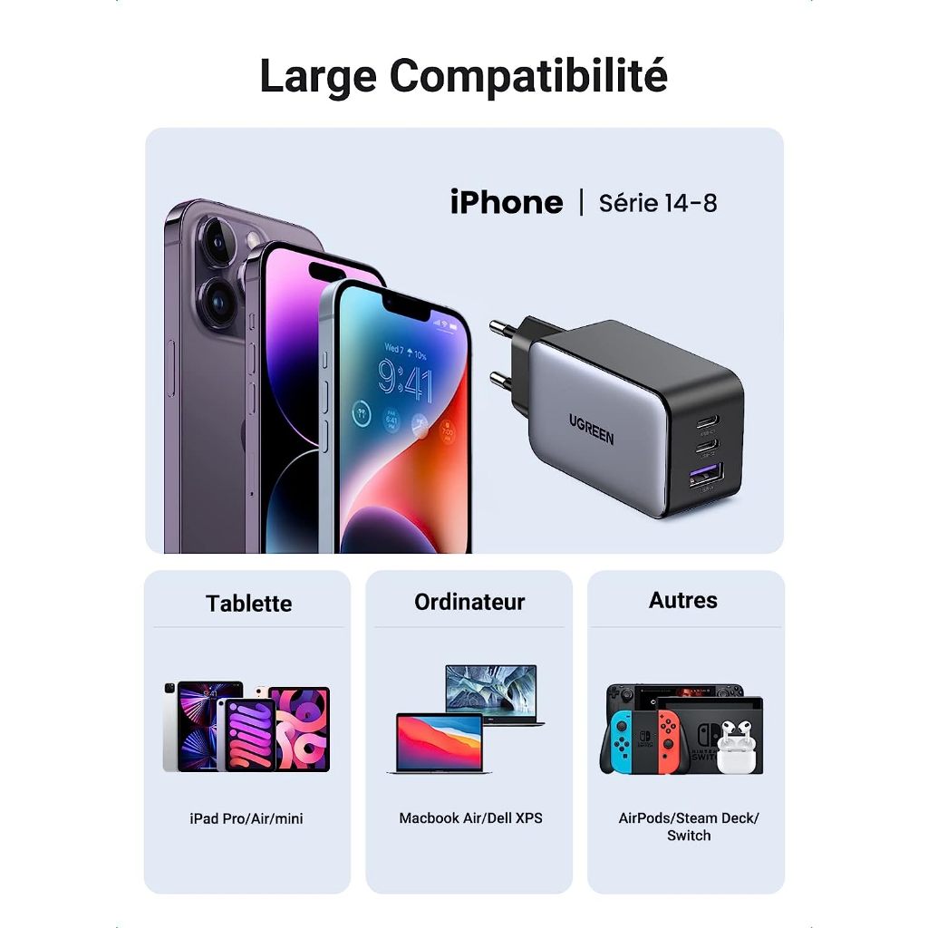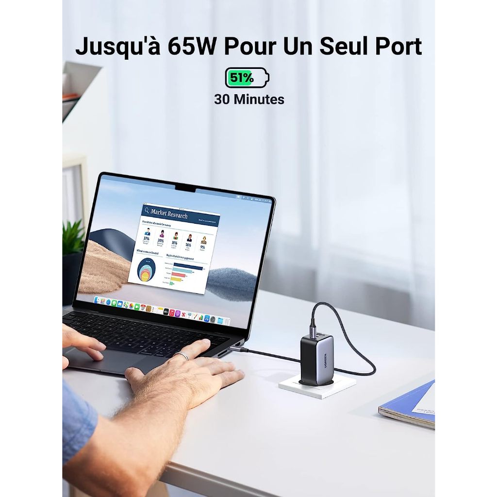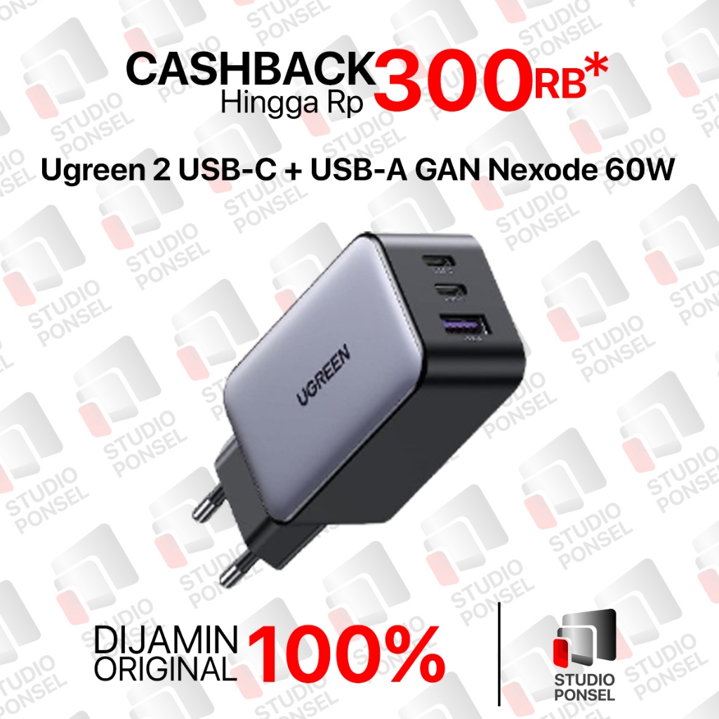 Ugreen Power Adapter Charger 2 USB-C + USB-A GAN Nexode 60W Fast