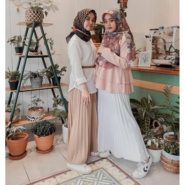 Alimama Rok Plisket Panjang Wanita Dewasa Dan Remaja Pinggang Karet Bahan Premium Hyget Adem, Lembut, Dingin, Tidak Biki
