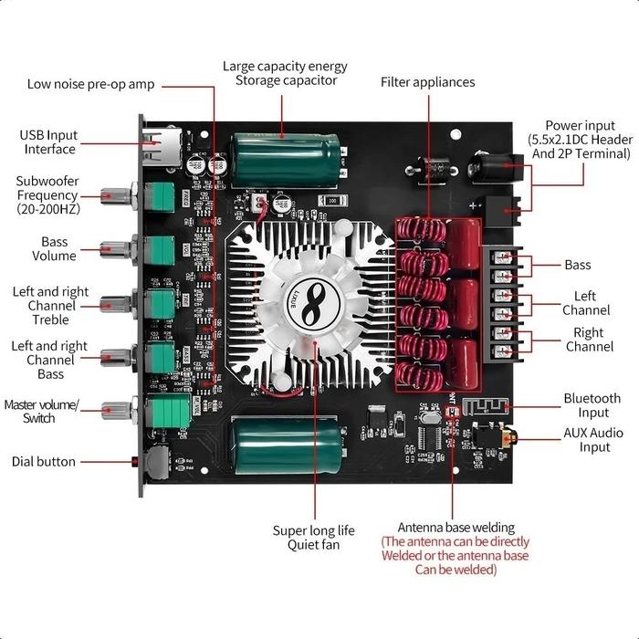 Speng Zk-Ht21 Bluetooth Digital Power Amplifier Amplifier 2.1 Channel Tda7498E Subwoofer Nada Tinggi Dan Rendah 160W 2