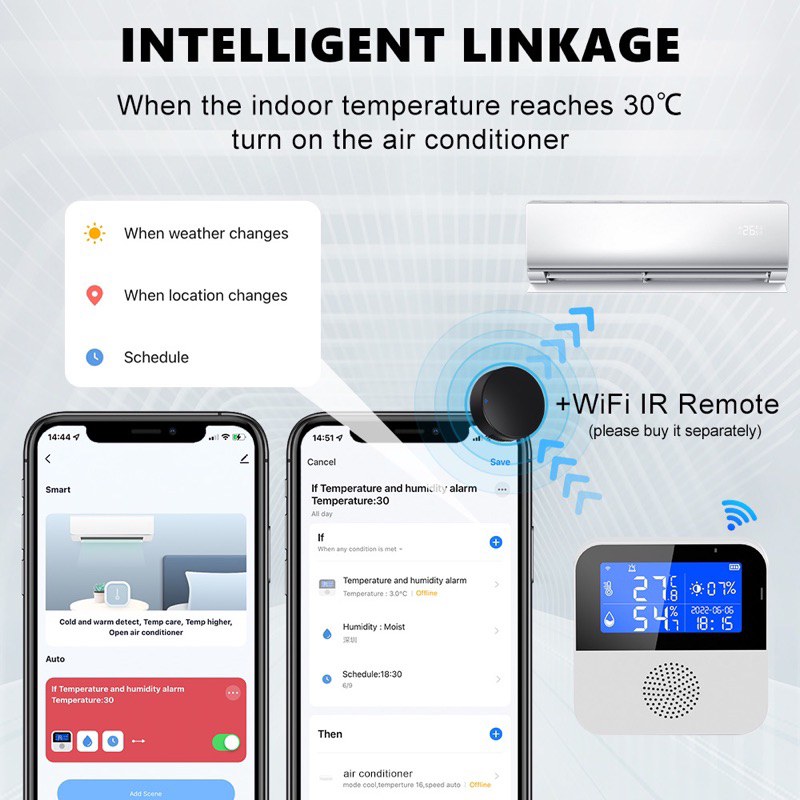 Smatrul Tuya Wifi Temperature Humidity Sensor Smart Safety Home Indoor Alarm Hygrometer Monitoring Detector USB Powered | 2.022.0227 | WSD004W-WIF-BLU