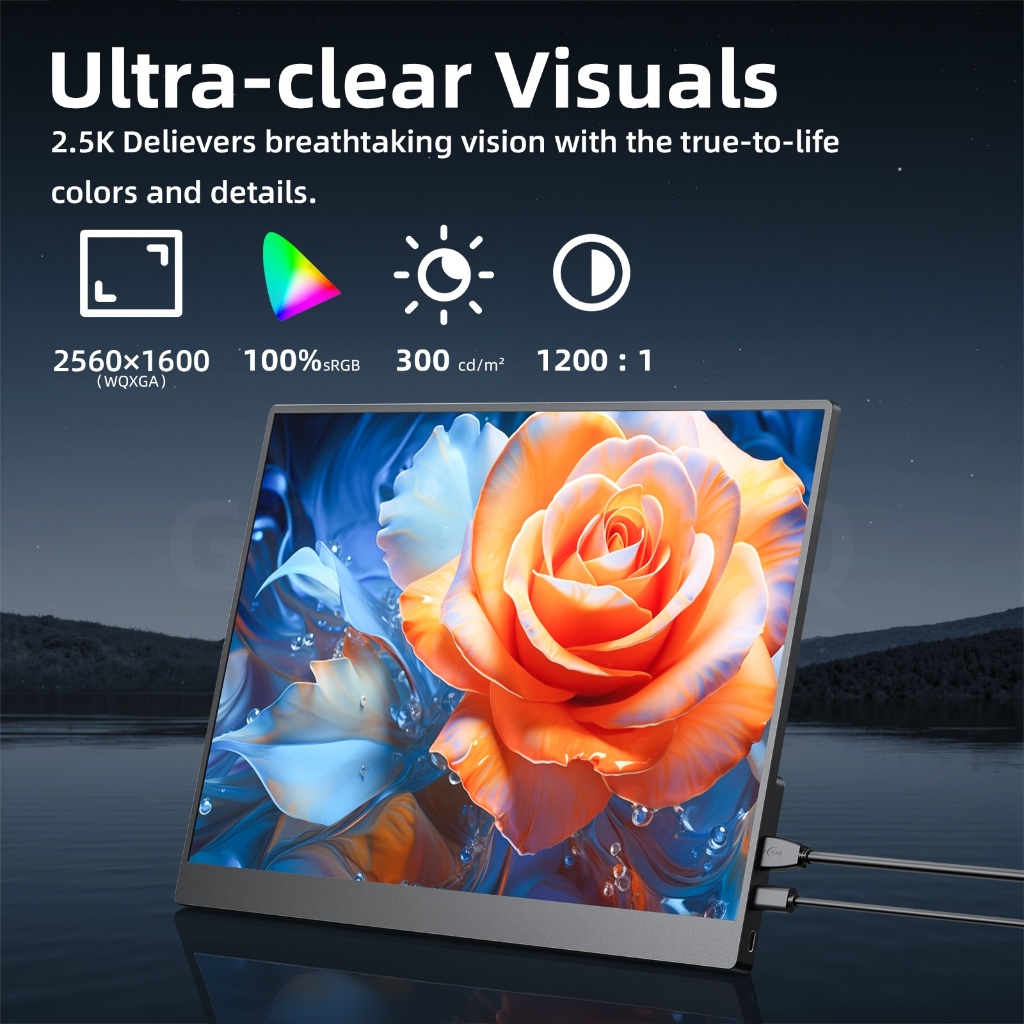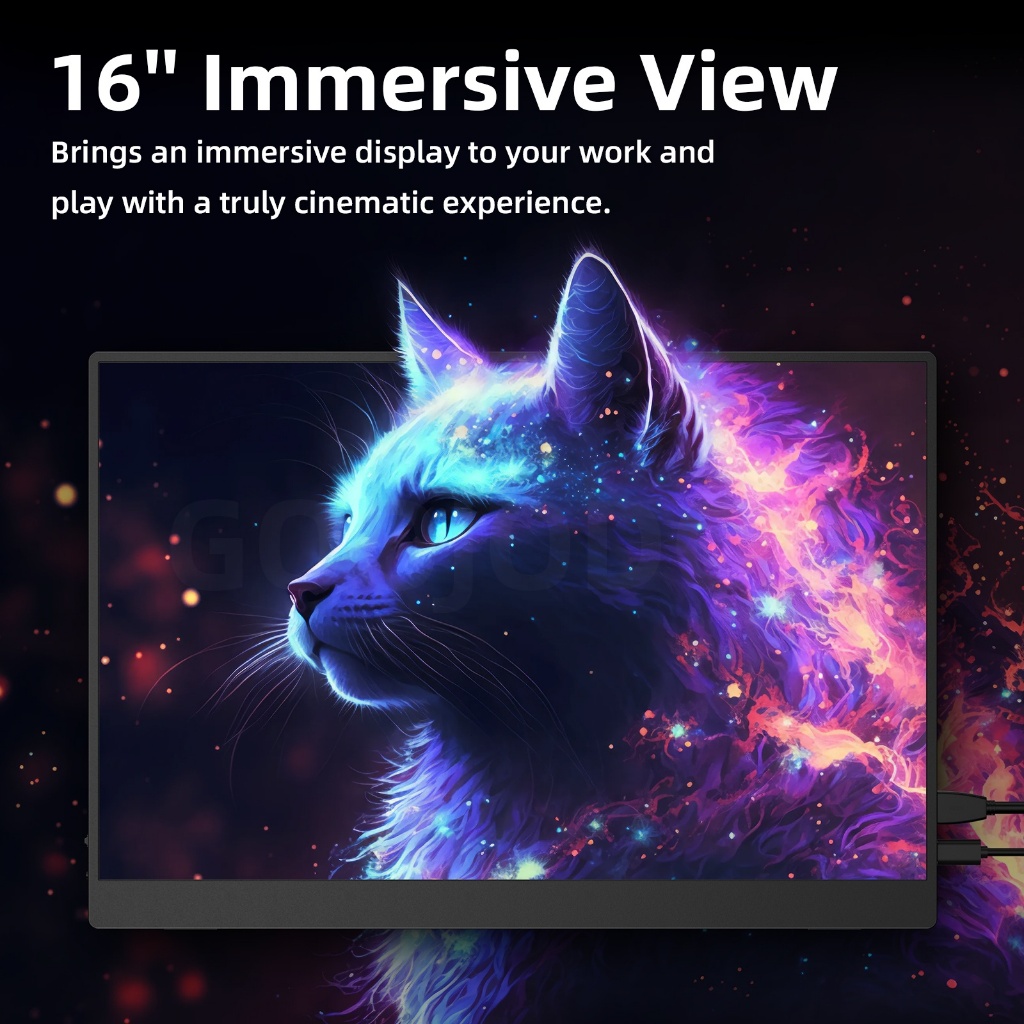 Magnetic bracket Monitor Built-in dual speakers for 100 PERSENsRGB Laptop 16'' 4K FHD 178° wide-angle IPS Display Monitor