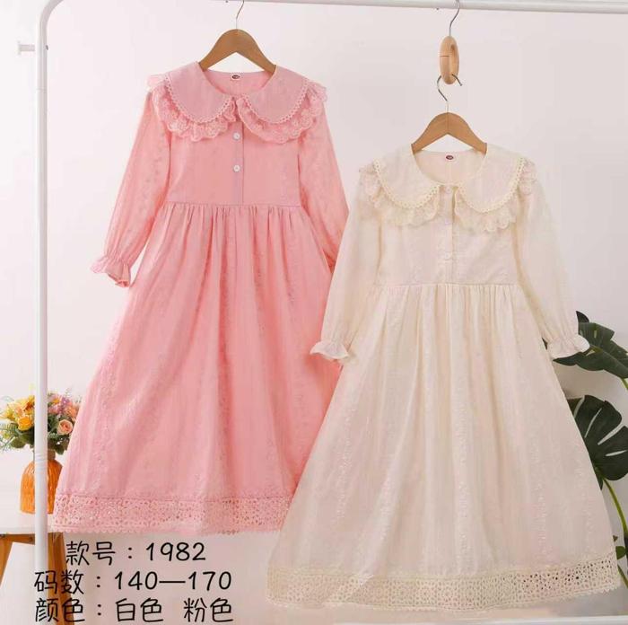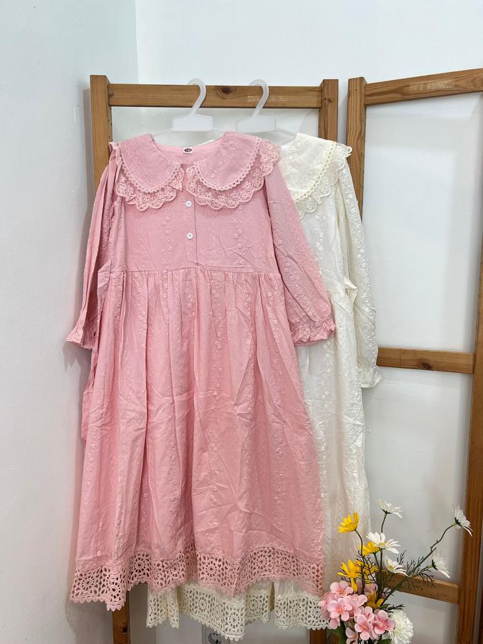 Maxi Dress Bordir Bunga Timbul Anak Perempuan 6-10 Tahun Import Bahan Katun Premium Kancing Hidup Renda Detail Ukuran 15