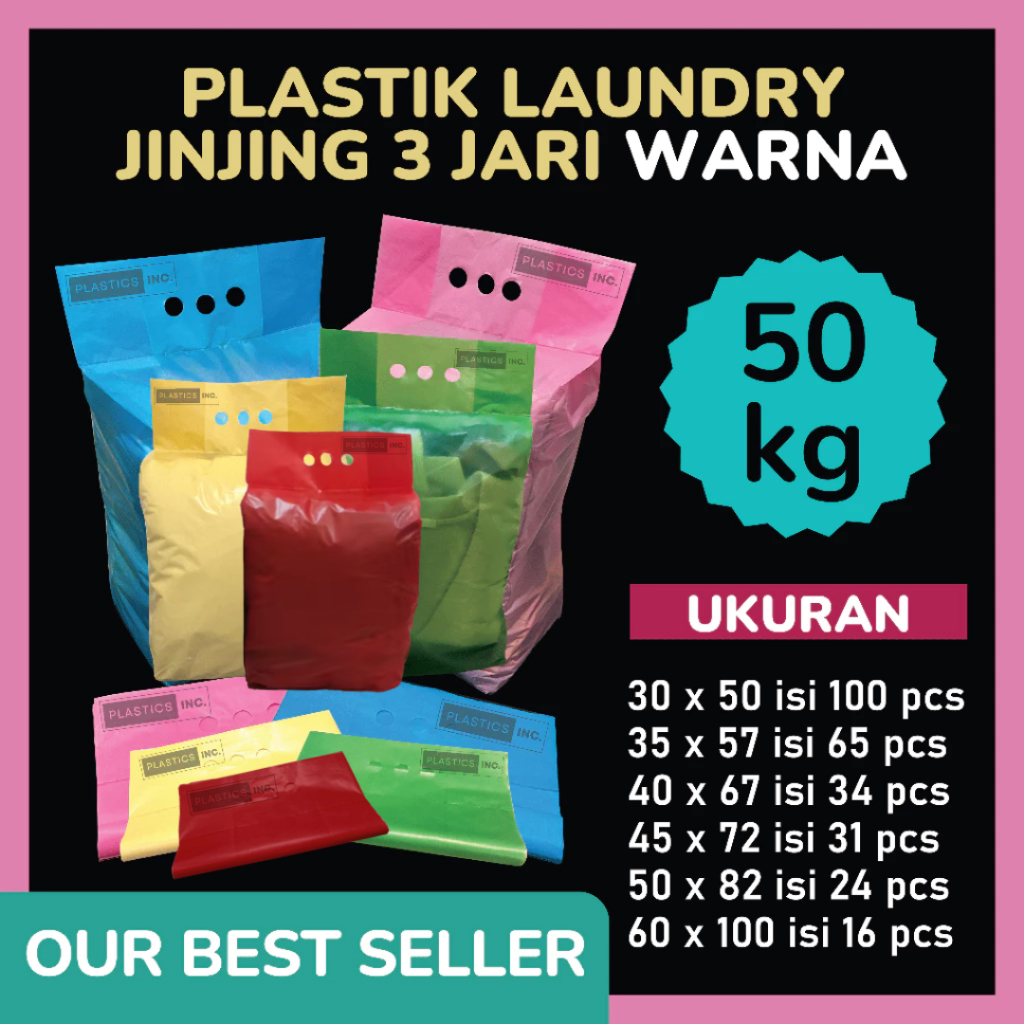 [Termurah] Plastik Jinjing Laundry 3 Jari WARNA (50 kg)