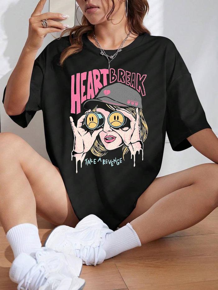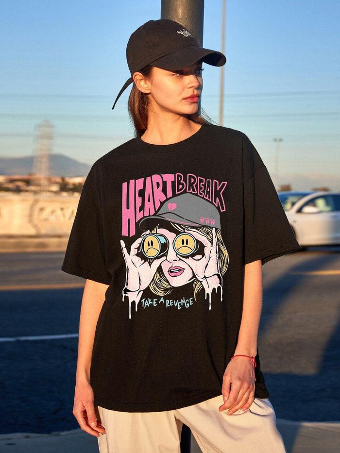 Tshirt Kaos Heart Break Girl Atasan Baju Cewek Motif Wanita Semikatun - Hitam, S