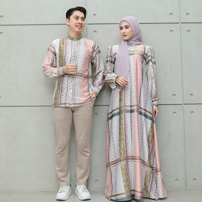 Aisyalina Id Vol 16 Sarimbit Collection Bilqis Dress Tanpa Hijab & Bilal Kemeja Raya Series Bahan Luxura Motif Printing