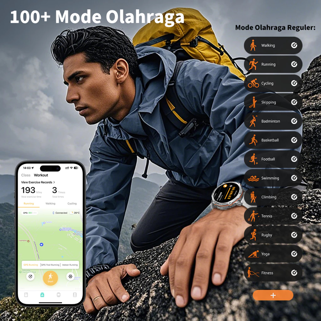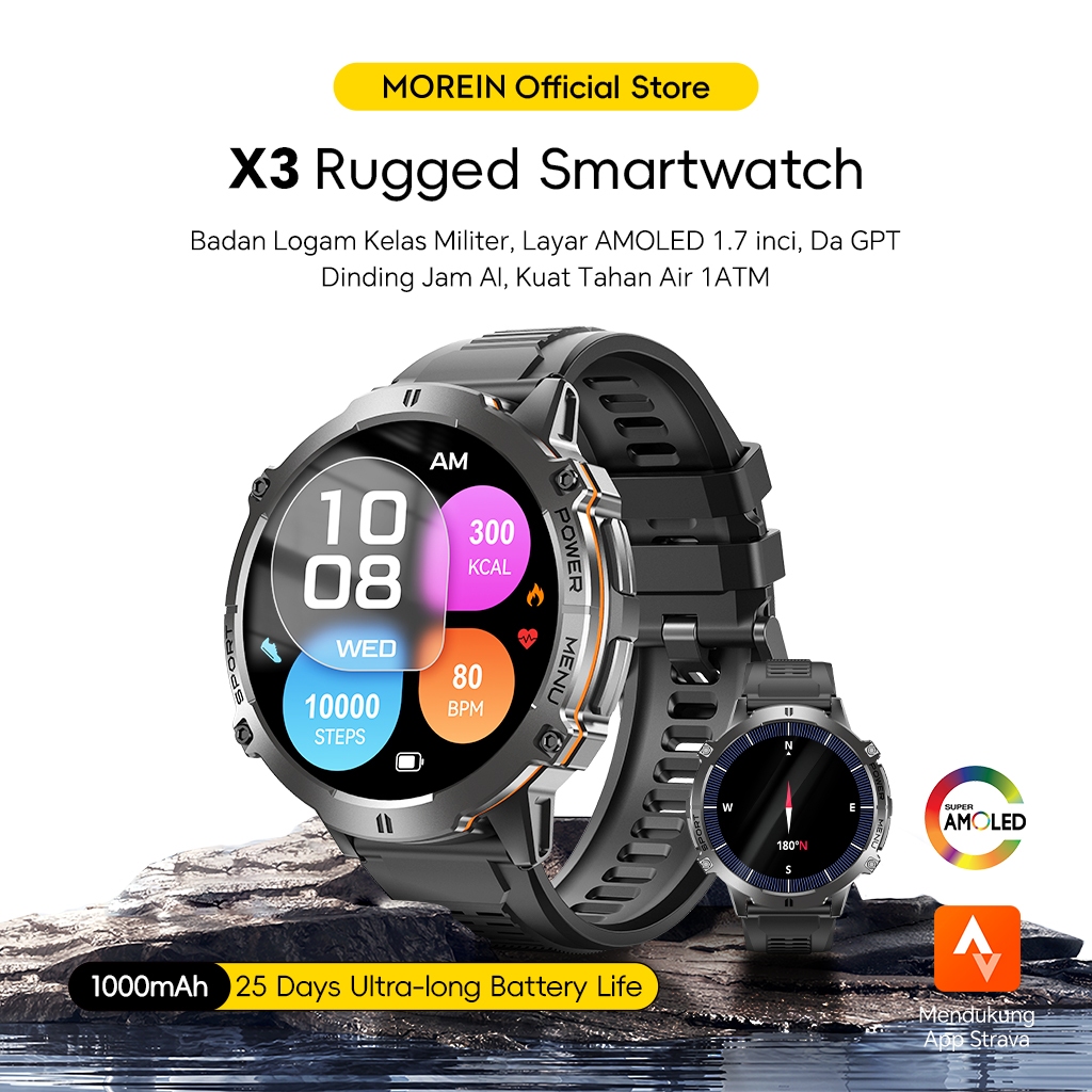 Morein Rock X3 Smartwatch 1.72" AMOLED AOD 1000mAh Battery Waterproof 1ATM Compas Altimeter AI Watch