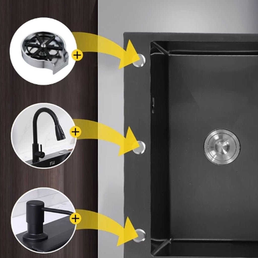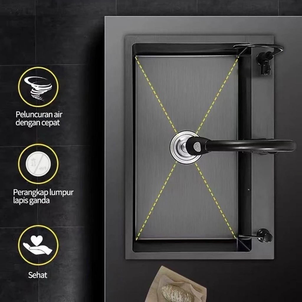 DP 0 Stainless Steel Kitchen sink Modern Kitchen Sink Kran Set Bak Cuci Piring Stainless Hitam cuci piring Ketebalan 30mm