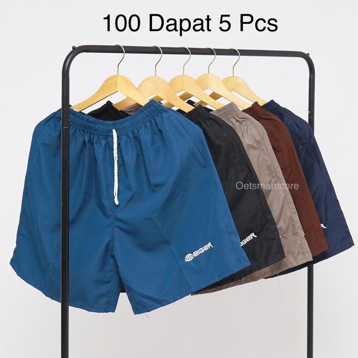 ( 5 Pcs 100 Rb ) Celana Pendek Kolor Pria Dan Wanita Kantong Resleting Jahitan Bordir Polos - Paket 5 Pcs Random, L (Bb
