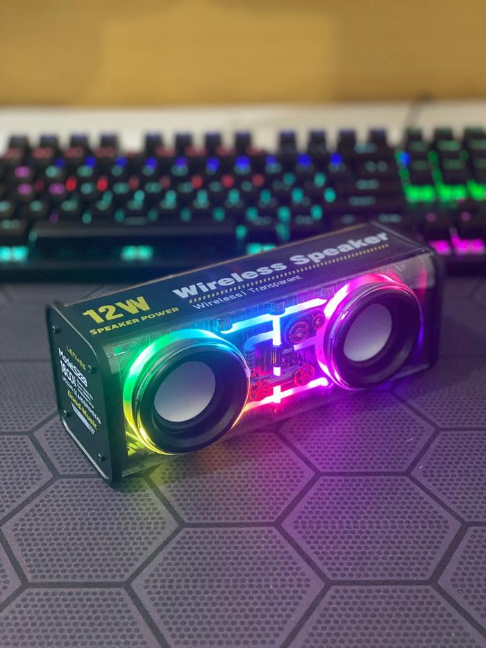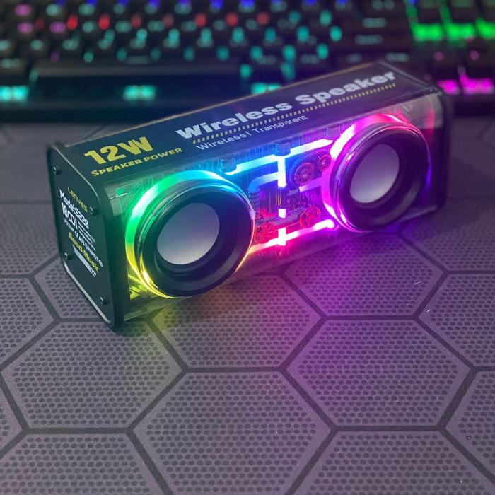 Lenyes S220 12W Mini Transparan Wireless Speaker Bluetooth 5.3 Transparant Rgb Led Light Tws Portable - Hitam