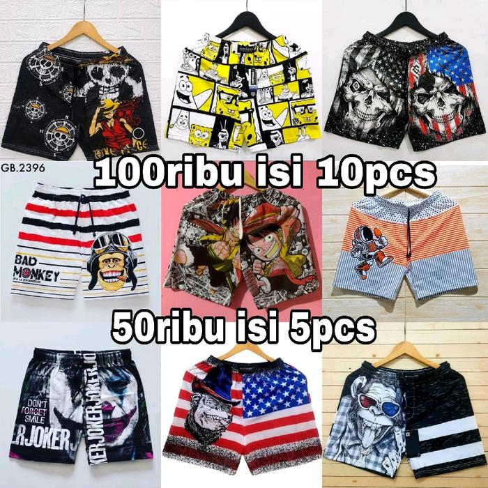 Celana Boxer Distro Santai Viral 100K Dapat 10Pcs Bisa Dipakai Pria & Wanita - Paket Isi 10Pcs(Boxer Surfing), All Size