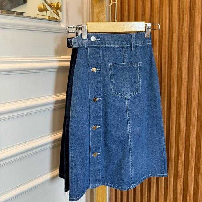 Rok Selena - Rok Jeans Anak Kancing Bahan Denim Fashion Anak Perempuan Usia 2-9 Tahun - Rok Kancing Hitam, Sz M