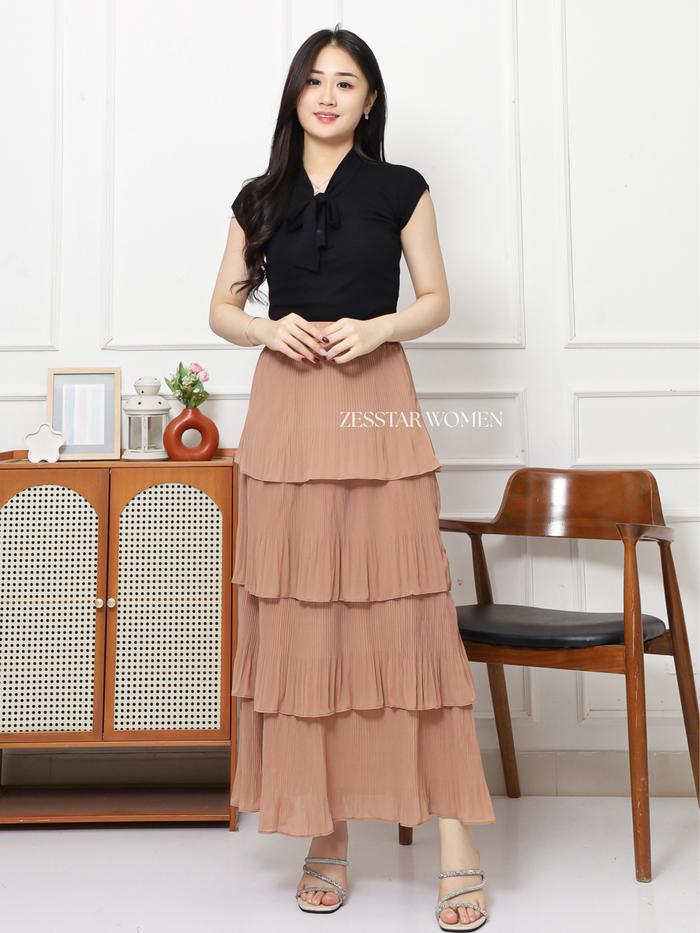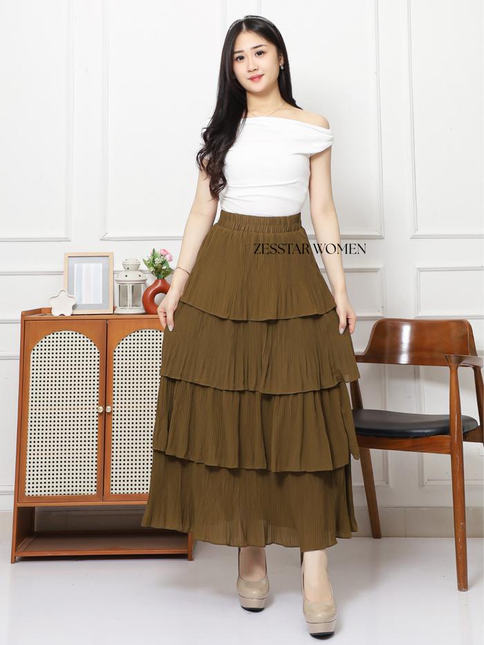 Inizio Fashion Denise Rok Susun 4 Tingkat Maxi Skirt Wanita Premium Panjang High Waist All Size Fit To Xl Bahan Brukat L