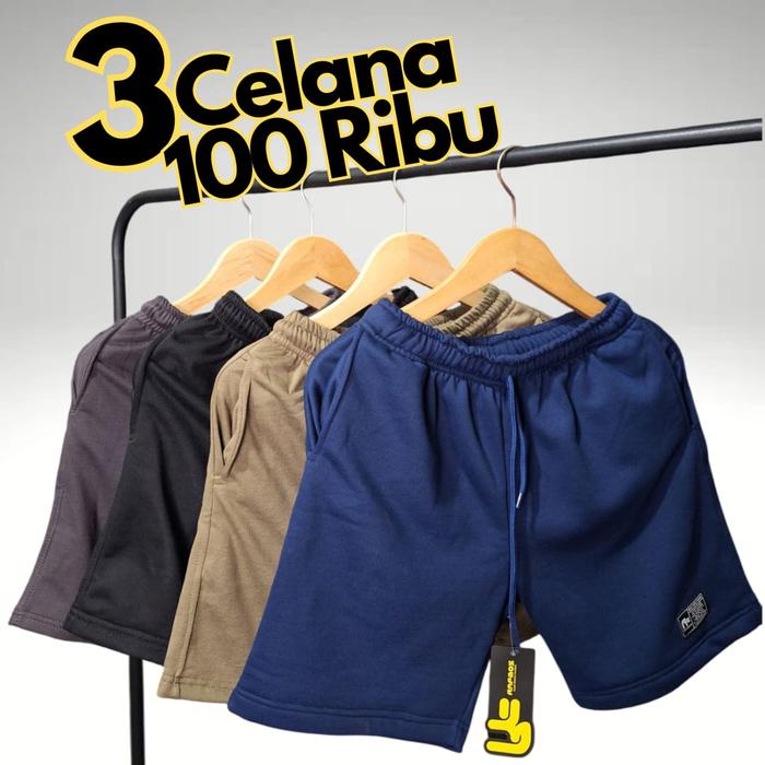 Paket Hemat 100K Dapat 3 Celana Broadshort Pendek Unisex Pria Wanita - Paket Isi 3 Celana List Random Warna, M