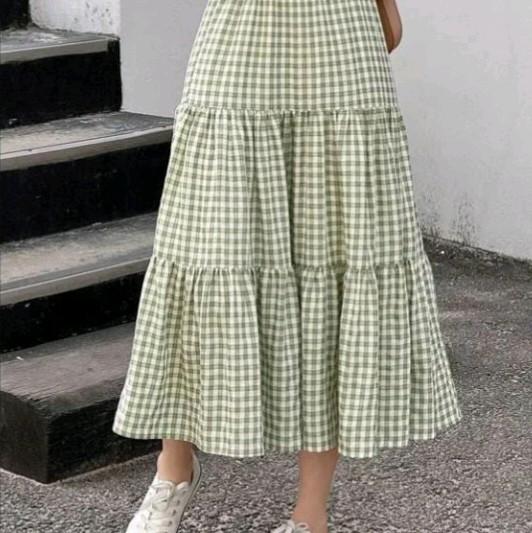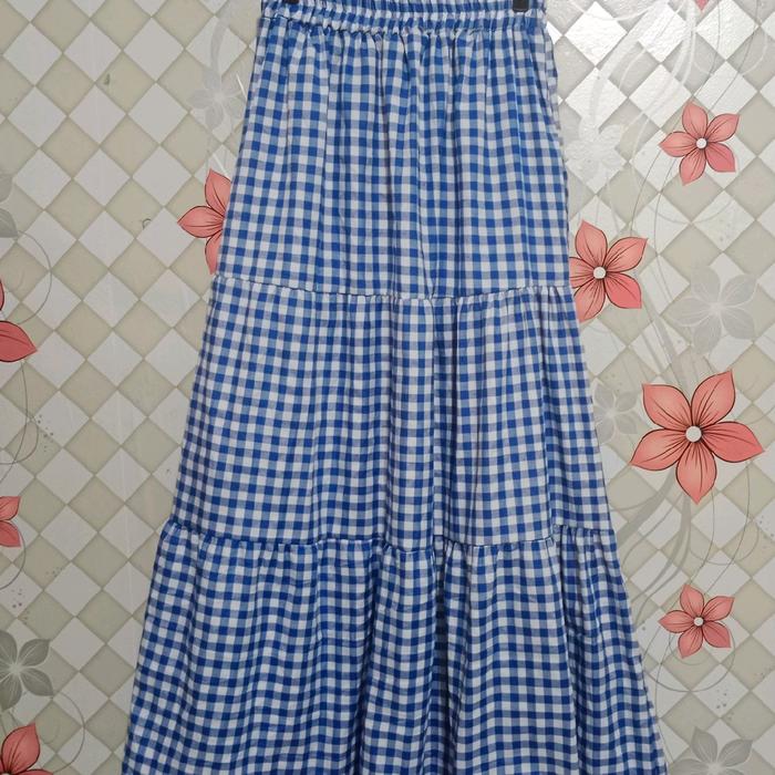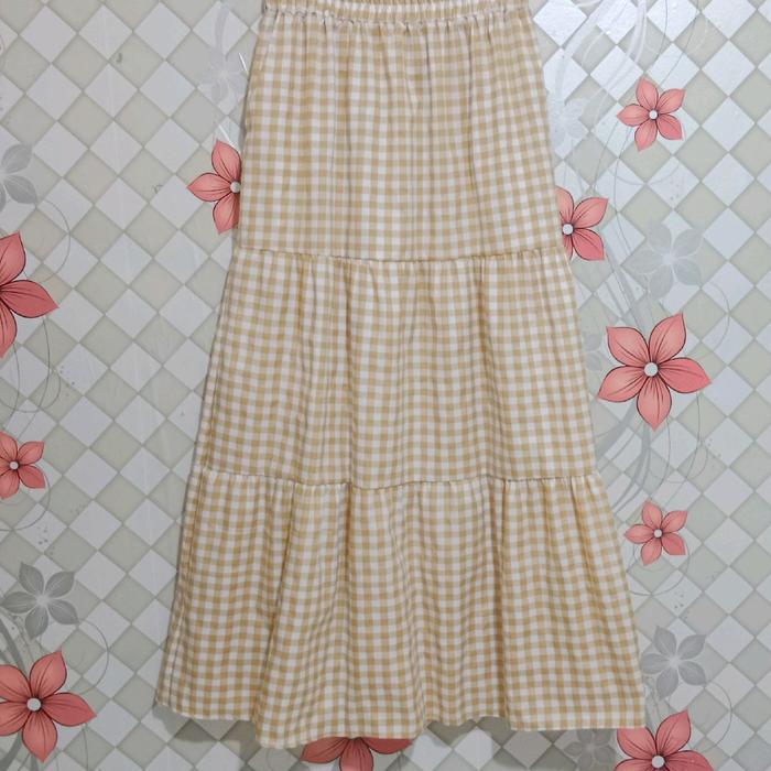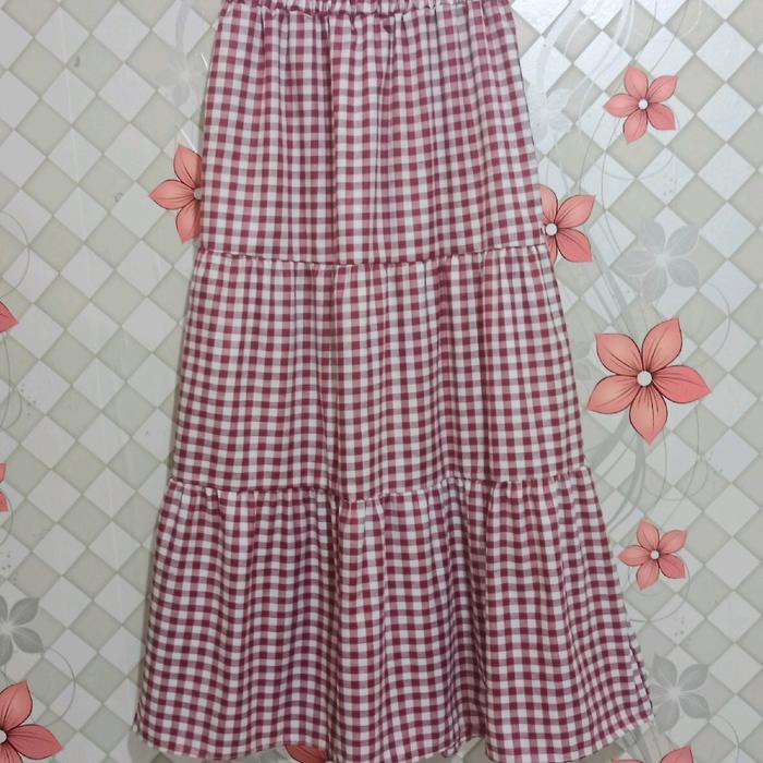 Rok Susun Bahan Katun Kotak/Rok Dewasa Terbatu/Kekinian Nyaman Panjang Full Karet - Allsize Pit L, Hitam