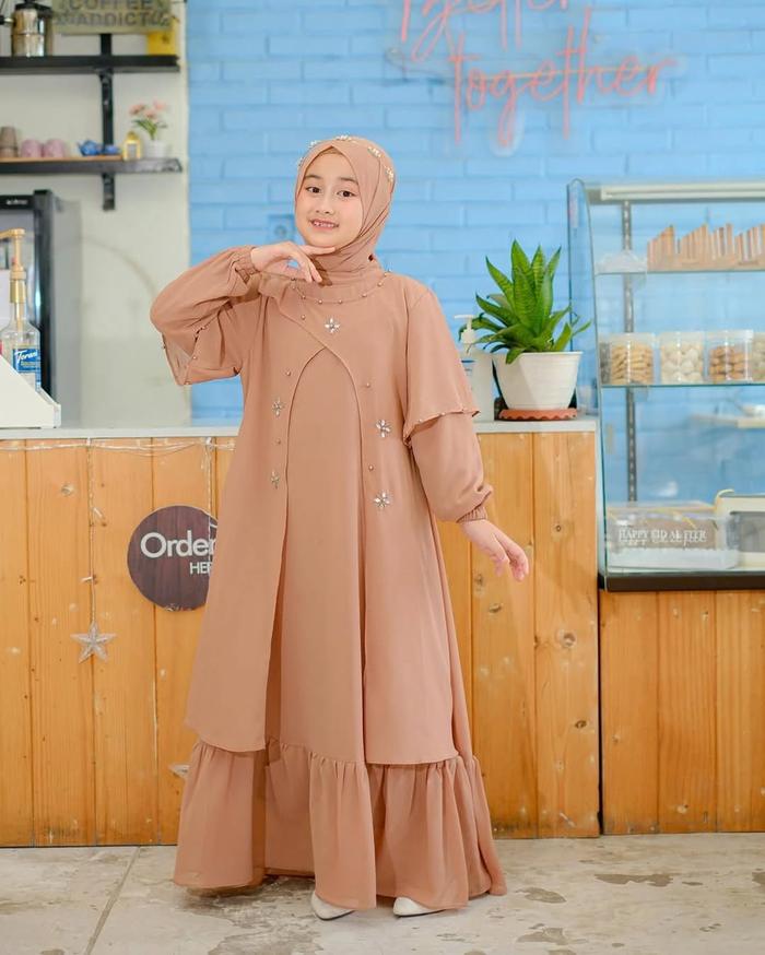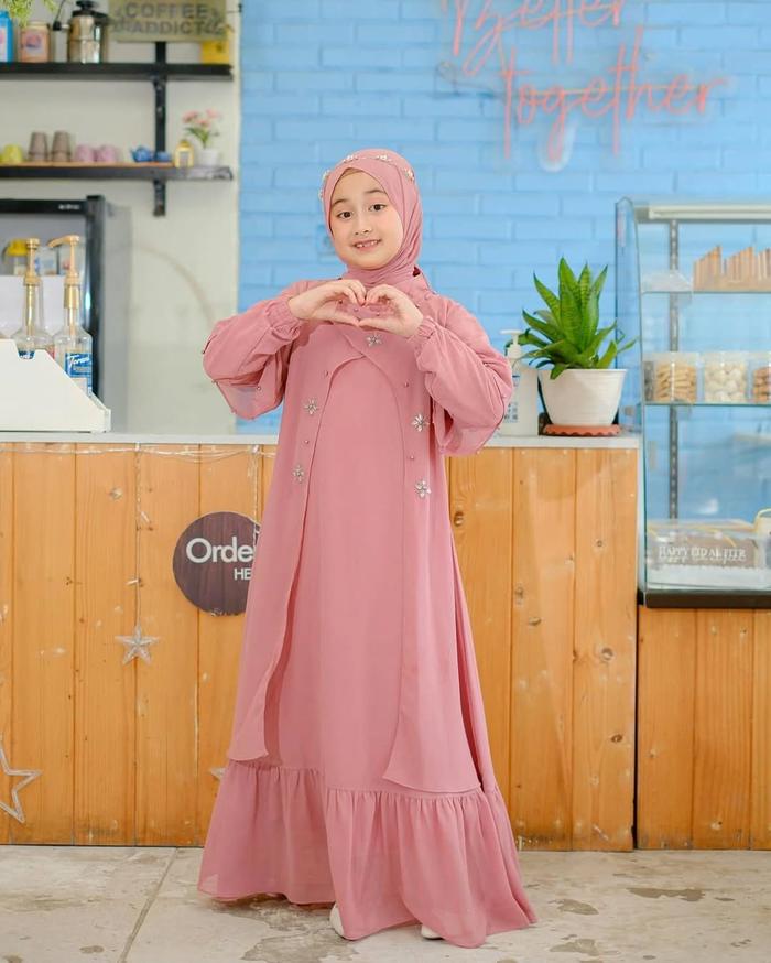 Gamis Abaya Hitam Anak Perempuan Zaina Set // Dress Anak Perempuan // Ceruty Babydoll Mix Payet Gamis Perempuan 2025 Aba