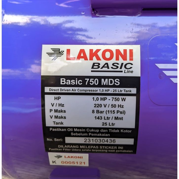 KOMPRESSOR ANGIN LAKONI 1 HP / LAKONI BASIC 750 MDS 25 LITER / POMPA ANGIN LISTRIK 8 BAR