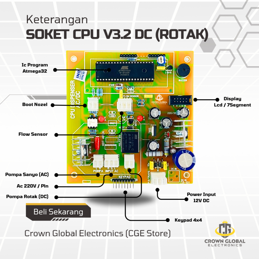 CGE STORE - Cpu Pertamini Pom Mini V 3.2 Pompa Acdc Atmega32 + Keypad + Lcd1602 Bisa EditNama & Stok