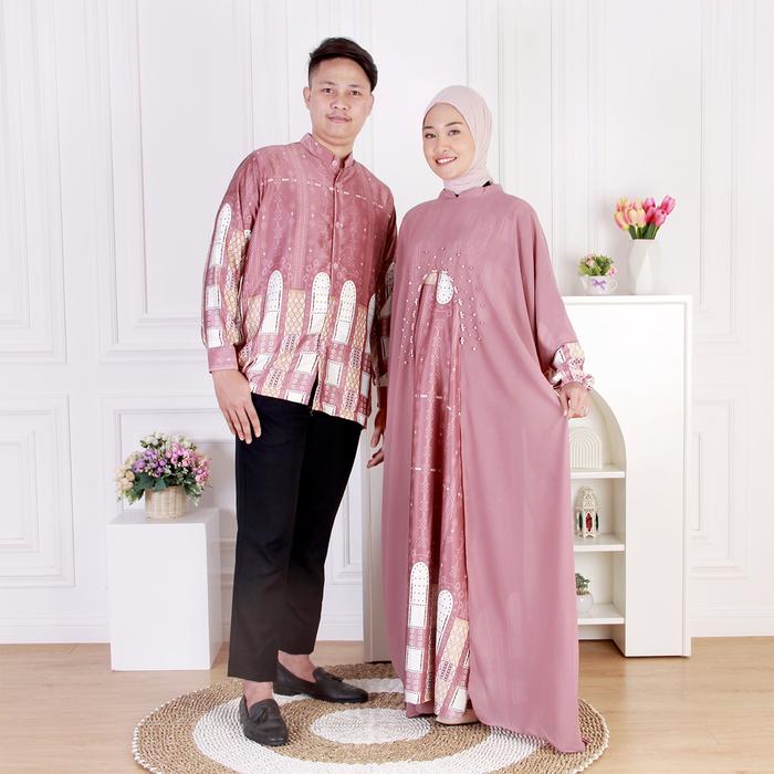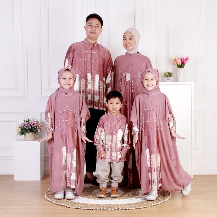 Dungdungkids Sarimbit Couple Lebaran Delisha Khalid Set Baju Muslim Raya Keluarga Mewah - Sage, Gamis Anak S (3 - 4 Tahu