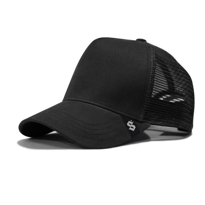 Snapback Topi Trucker Baseball Polos Hitam Jaring Premium - Polos