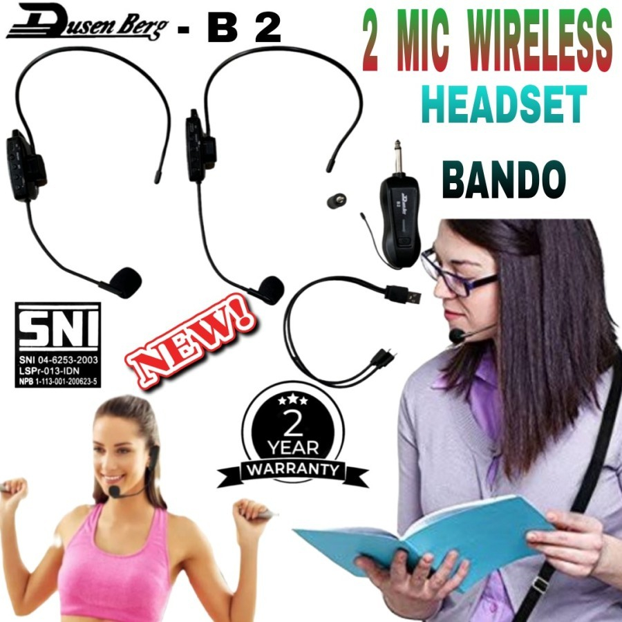2 MICROPHONE WIRELESS HEADSET BANDO IMAM,AEROBIK,MENGAJAR DUSENBERG B2