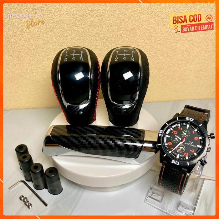 PAKET KNOB GIGI TRANSMISI 5 SPEED MOBIL MANUAL & COVER REM UNIVERSAL TUAS PERSENELING CAR