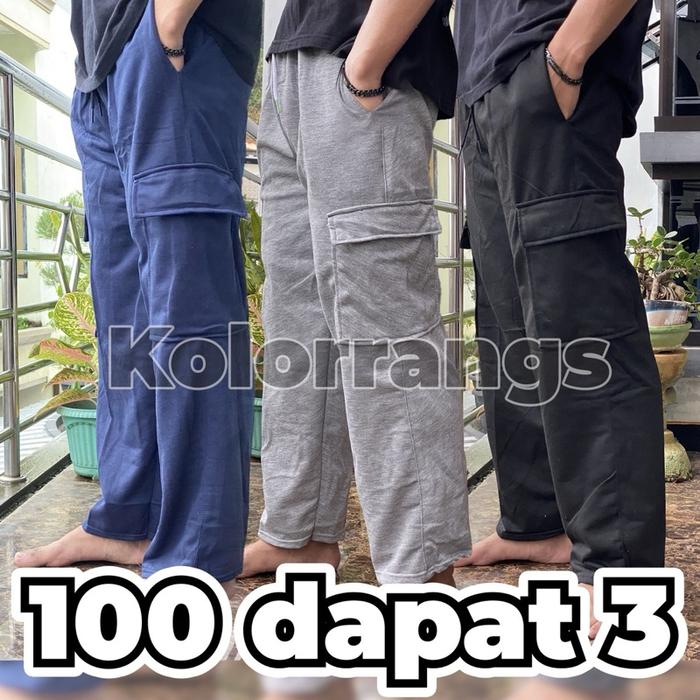 Paket 3Pcs 100Ribu Celana Cargo Pants Premium Pria Bahan Babyterry - Celana Pria Panjang Dewasa Karet - Random 3 Celana,