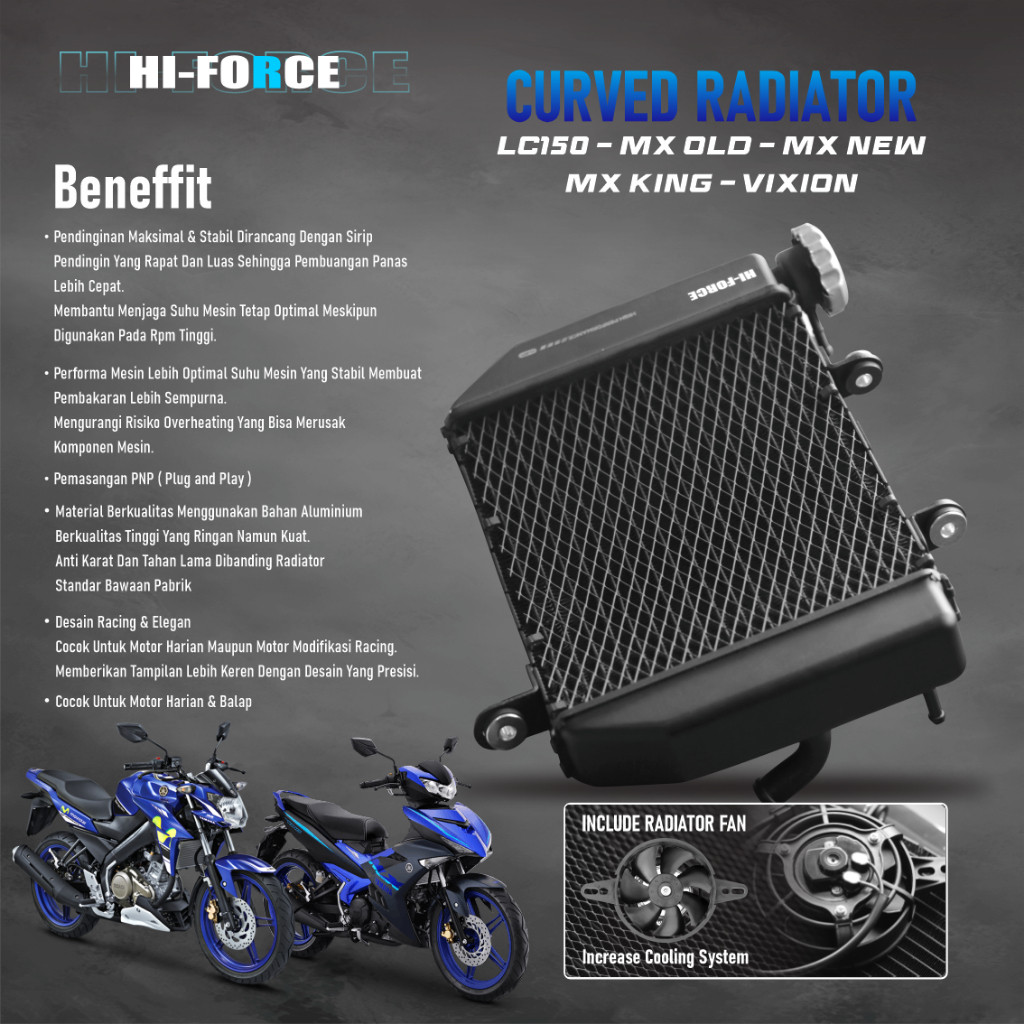 DP 0 H4R HiForce Radiator Curved Aluminium Racing LC150 MX King MX Old MX New Vixion Include Fan PNP H4