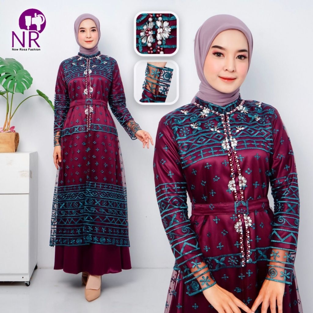 Liona Dress - Casual Dress Etnik Modern / Gamis Muslim With Beads / Gamis Rompi Lepas Pasang Pakai Payet dan Mote / Gamis Pesta Kekinian