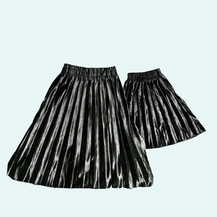 Rok Plisket Bludru Anak Premium / Rok Velvet Bludru Anak / Rok Plisket Anak Premium Cantik Fashion - Hitam, S ( 1-2 Tahu