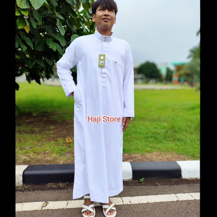 Gamis puti peria haji dan umroh bahan bahan katun flat premium 100% merk Solu - Puti S