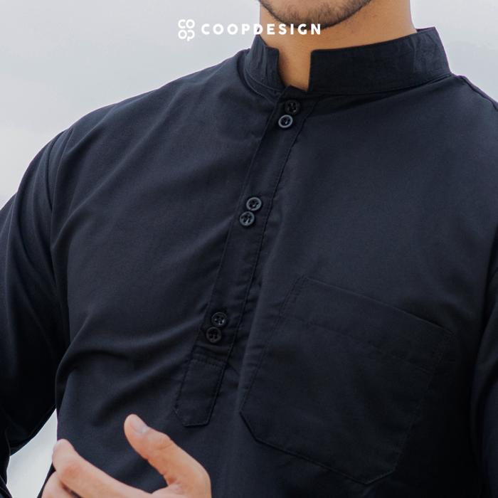 [NEW ARRIVAL] Coop Design - Husein Gamis Jubah Pakaian Kerah Shanghai Pria Muslim Polister Dewasa Lengan Panjang - Black