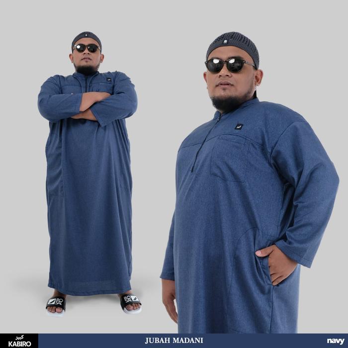 Jubah Madani Kabiro Gamis Pria Jumbo Badan Besar Pakaian Muslim Big Size By Rosal - Navy 4XL