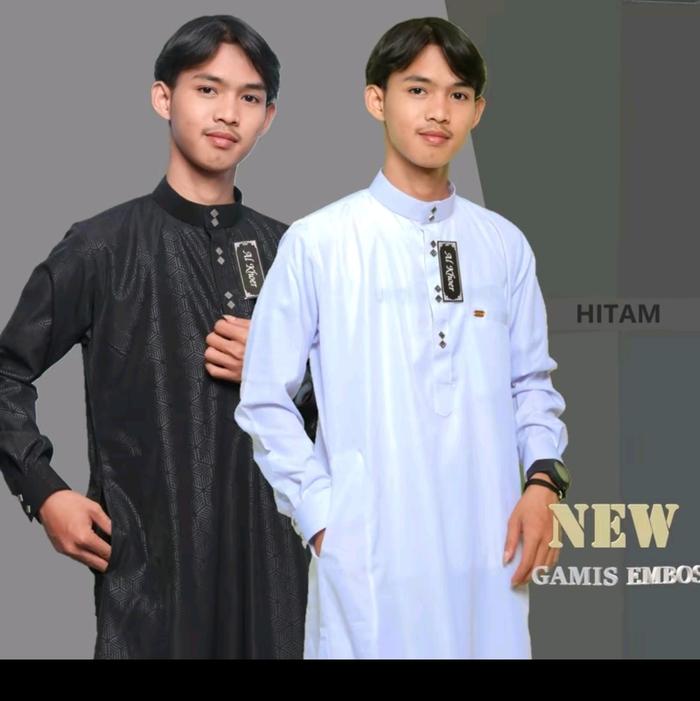 jubah peria dewasa jubah warna hitam putih gamis murah 2024 putih hitam abu embos - hitam S